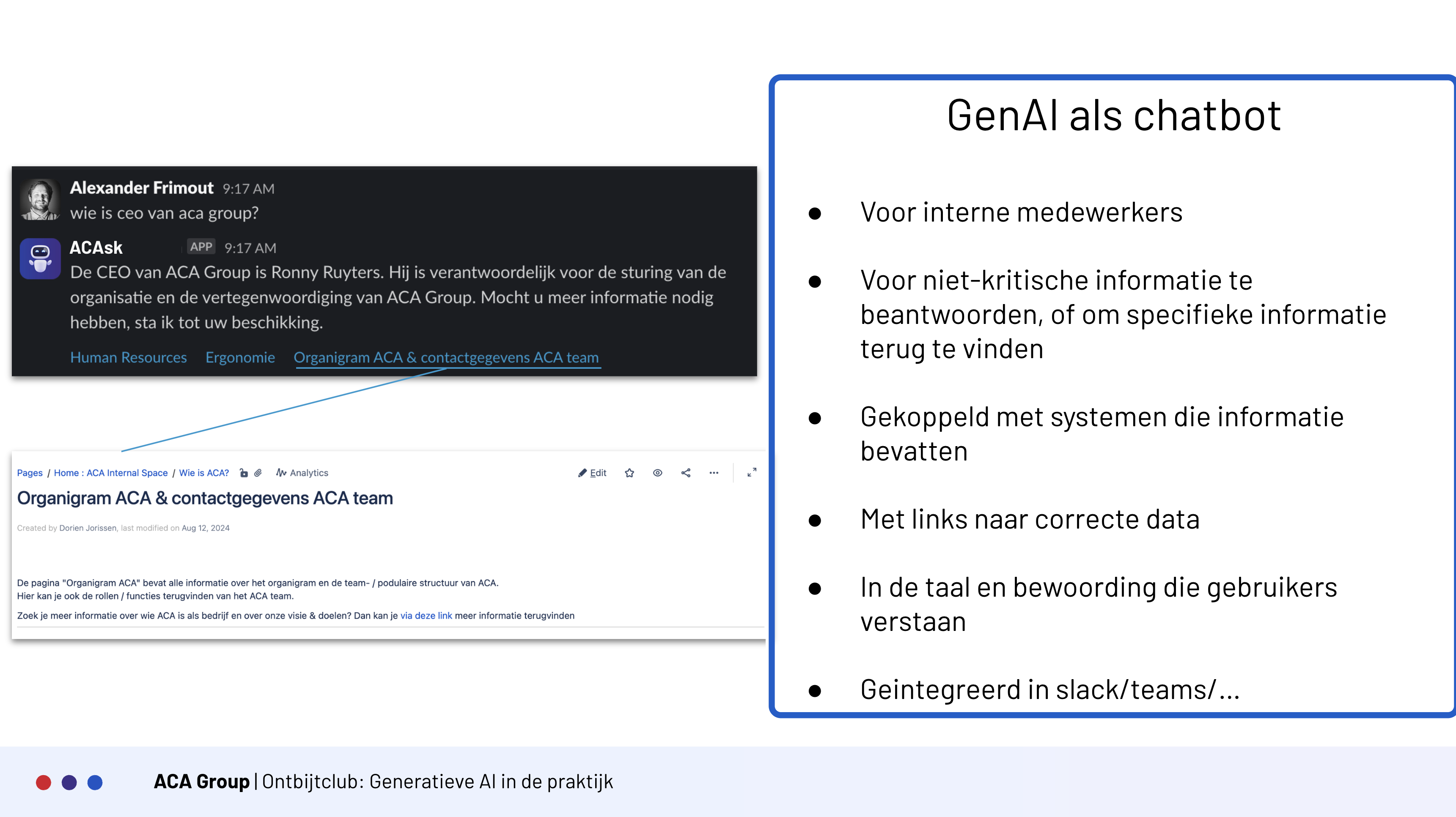 As artificial intelligence continues to evolve and reshape industries, ACA Group’s own Alexander Frimout is at the forefront, sharing practical insights and expertise on how businesses can harness this technology. At a recent sold-out event, Alexander explored the real-world applications of generative AI, moving beyond the chatbot capabilities most people are familiar with. His session drew a full house of business leaders eager to understand how AI can drive efficiency and innovation in their organizations. Here’s a look at what made this event such a success.
