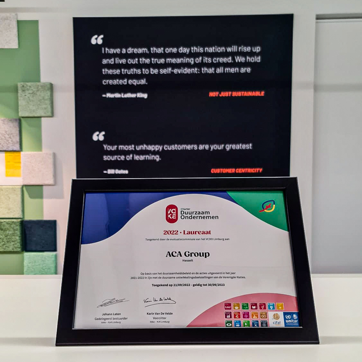 November 2022 - The ACA Group received the coveted Voka Charter Sustainable Business (VCDO) annual certificate for 2022 - 2023. A recognized UNITAR sustainability certificate that provides a framework for companies to translate sustainable ambitions into practice and aims to encourage companies to challenge themselves every year to go further!